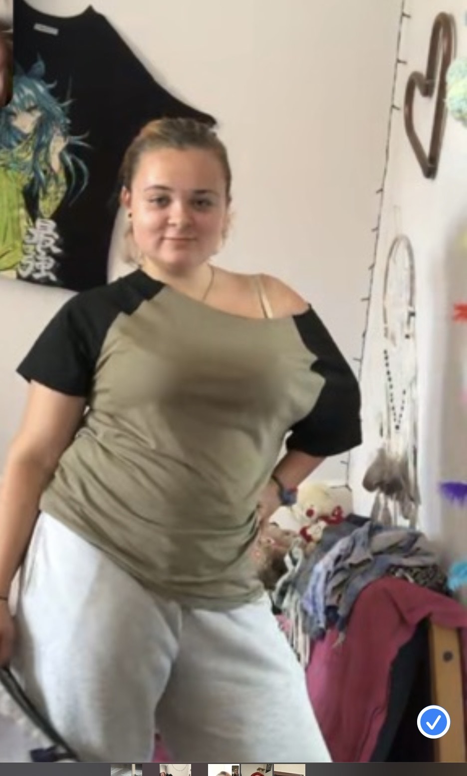 - sie soll mit einer schwarzen Jogginghose, einem grauen Kapuzenpullover und mit Schuhen der Marke Nike Air Force in weiß/rose bekleidet sein.
